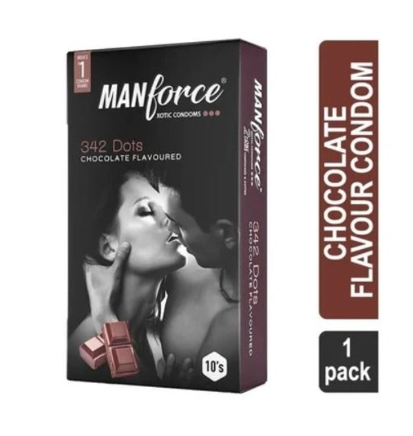 Manforce Xotic 3 in 1 Double Contoured & Dotted Vegan Condom (with 342 dots, Chocolate Flavour)